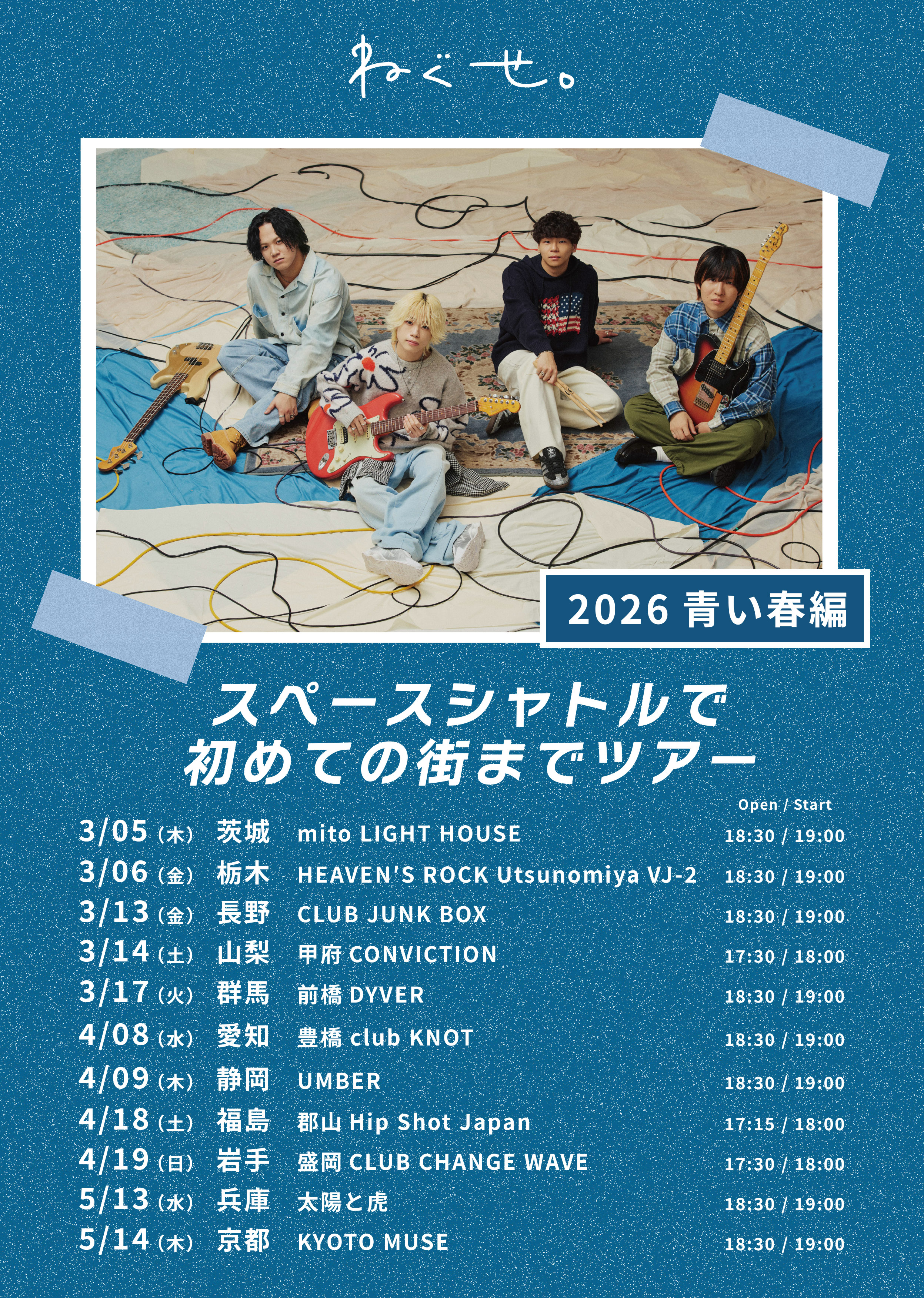 ねぐせ。「スペースシャトルで初めての街までツアー ~2026青い春編~」の開催が決定いたしました!
